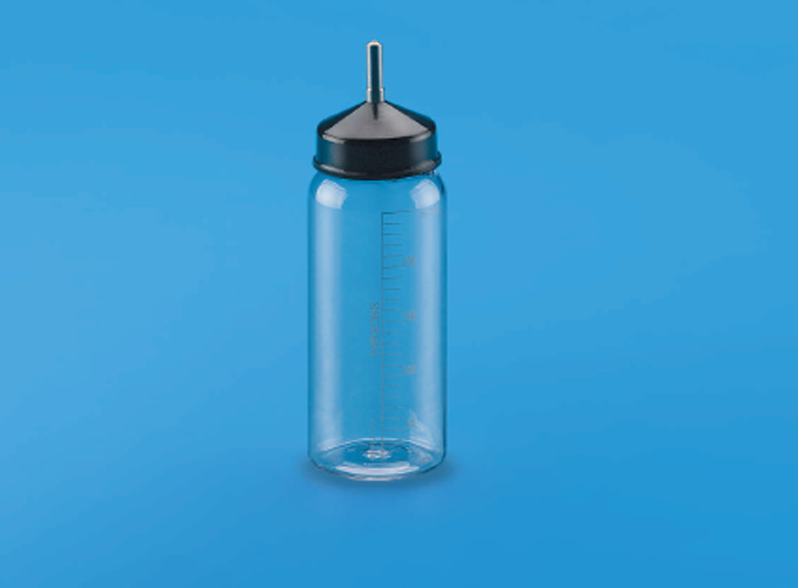 Autoclavable, shatter proof polycarbonate bottles.